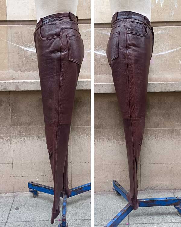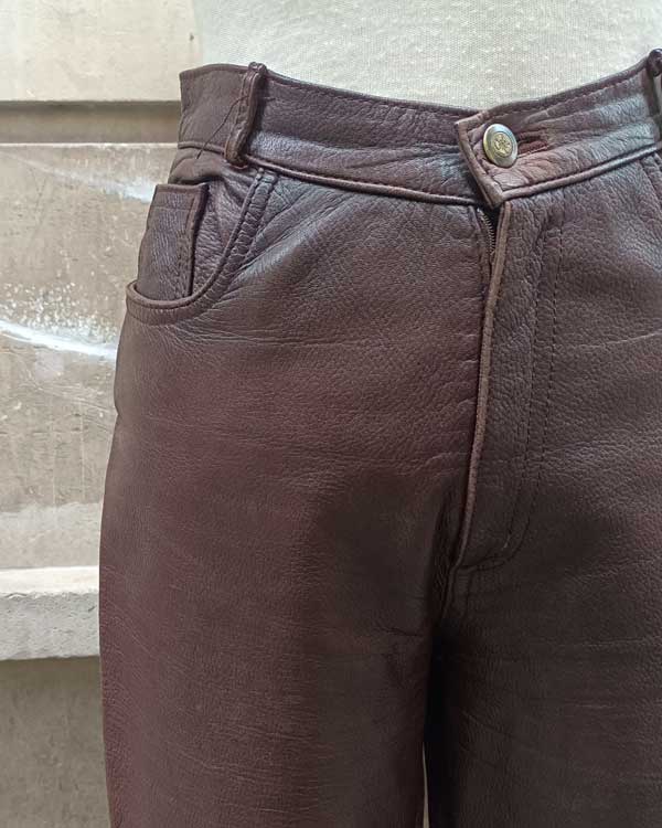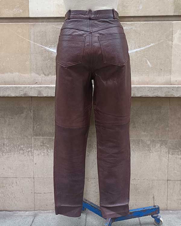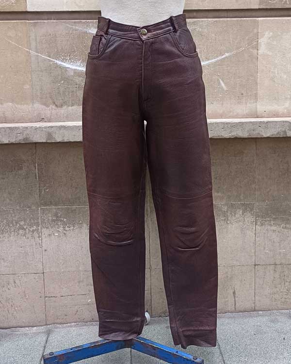 Estupendos pantalones vintage de piel color castaña, muy fáciles de combinar perfectos para la temporada de otoño invierno.
